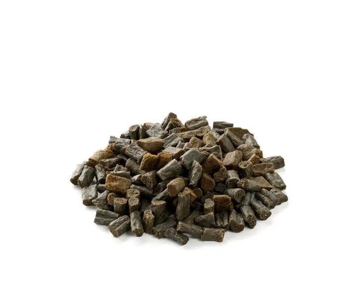 Unsere natürlichen Seebarsch-Sticks-Trainingssnacks setzen sich aus Seebarsch sowie Tapioka zusammen und eignen sich daher auch als Leckerli für empfindliche Hunde.